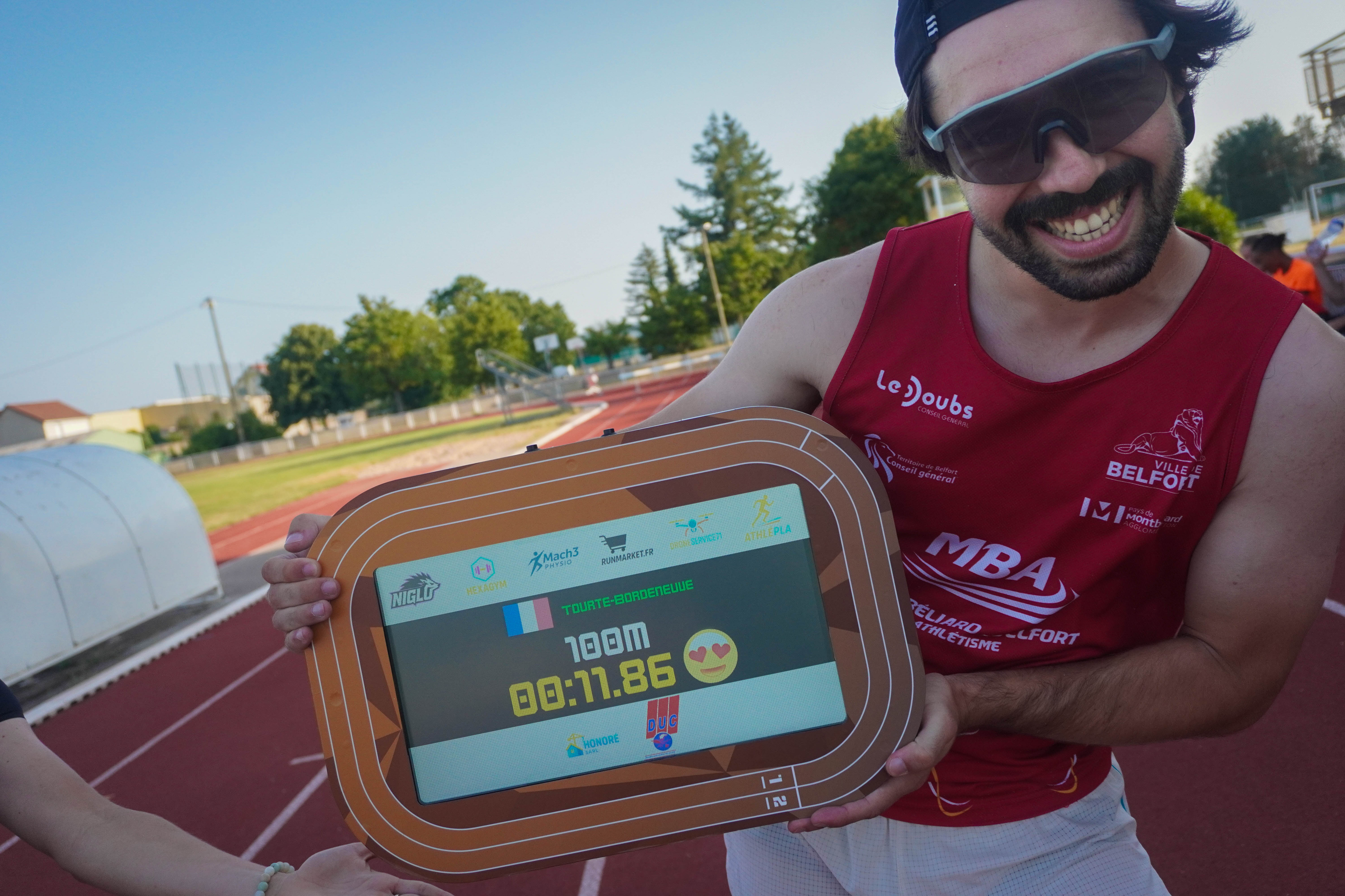 Je m'appelle Anselme. Je suis un athlète amateur passionné d'innovation. J'ai créé TrackDisplay, le premier afficheur 100% dédié à l'athlétisme. Fini les planches en carton et de se dépêcher pour prendre une photo avec le chronomètre : immortalisez les records personnels, de meeting ou nationaux en toute tranquillité, avec un afficheur personnalisable au style unique. Modèle déposé !