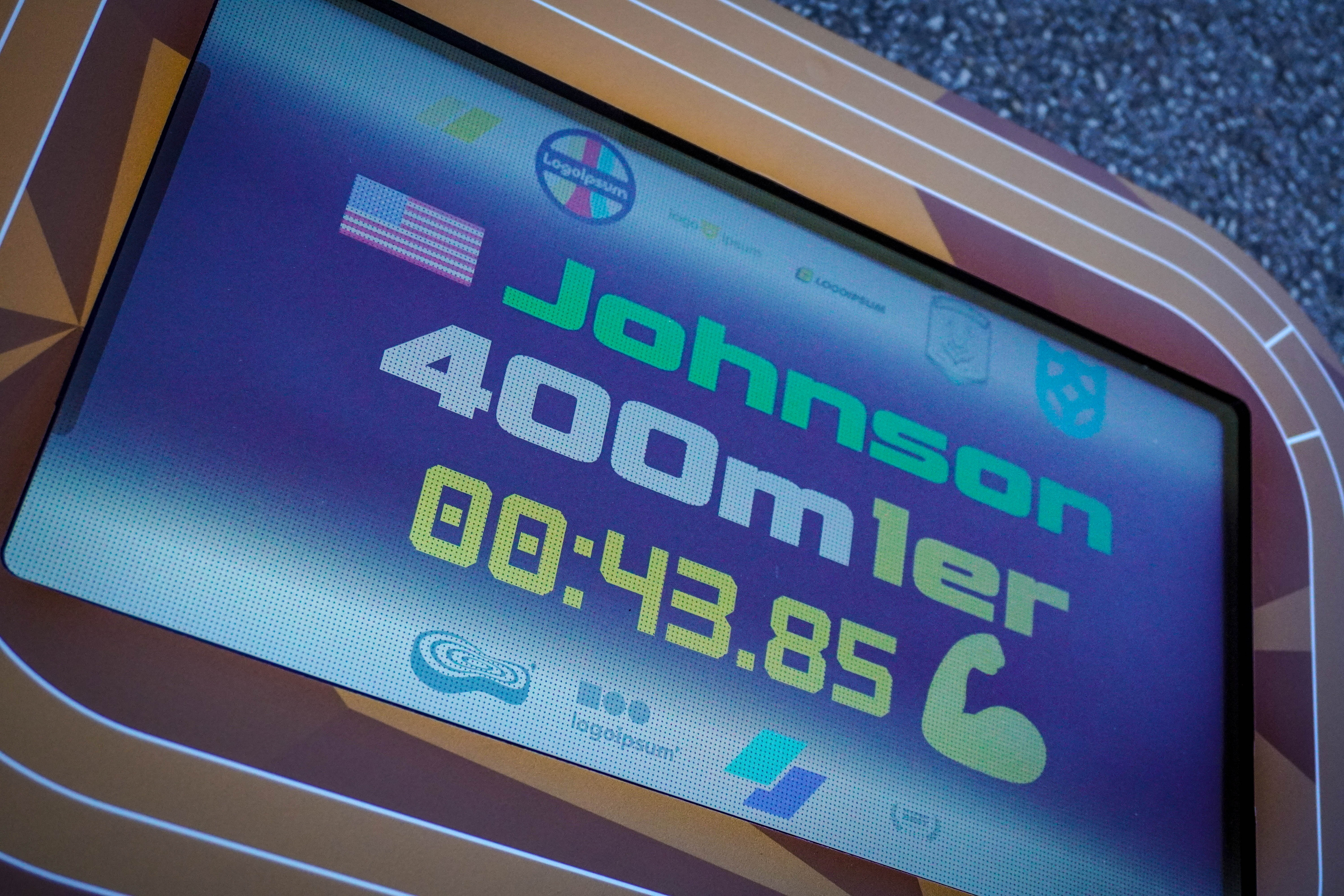En utilisant l'application mobile ou pour ordinateur, vous décidez de ce que le TrackDisplay doit afficher : nom de l'athlète, pays, épreuve, performance réalisée, mention spéciale (record personnel, record du meeting, etc.). Cliquez, et la magie opère !